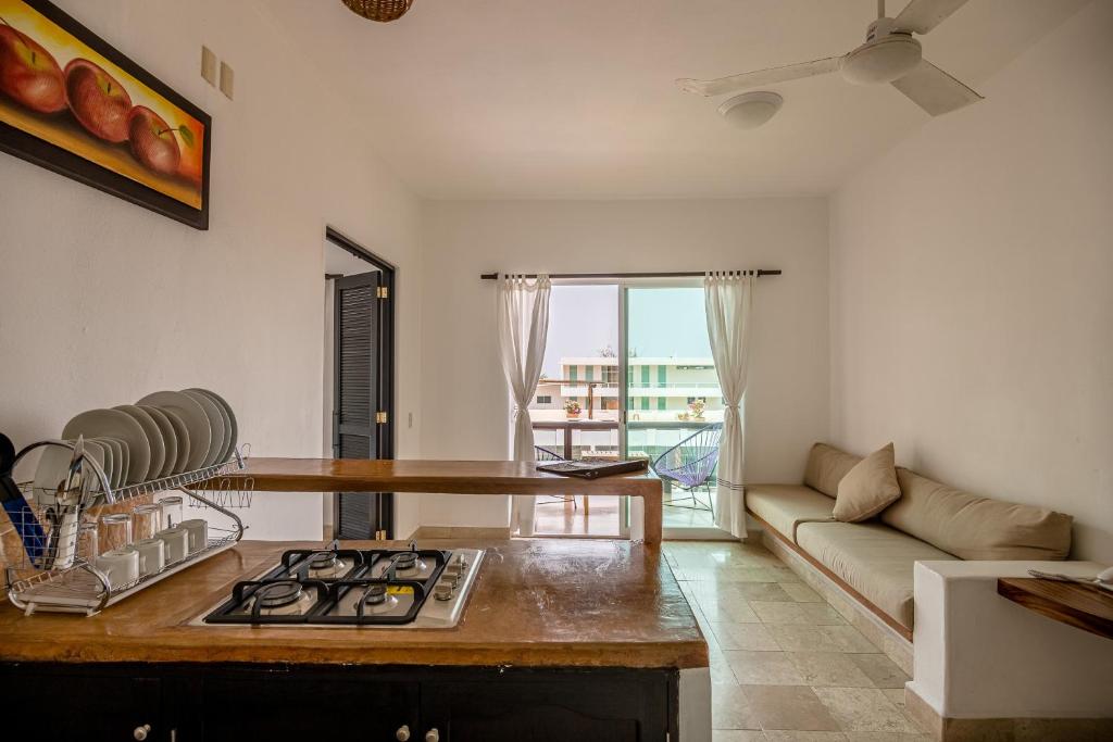 Esta Suite cuenta con balcón/hamaca, aire acondicionado cocina equipada, sala de estar, TV pantalla plana, nevera y vista a la piscina.